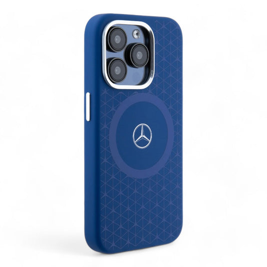 Estuche mercedes-benz magsafe iphone 15 pro liquid silicone navy blue magsafe compatible with mini star pattern color azul marino