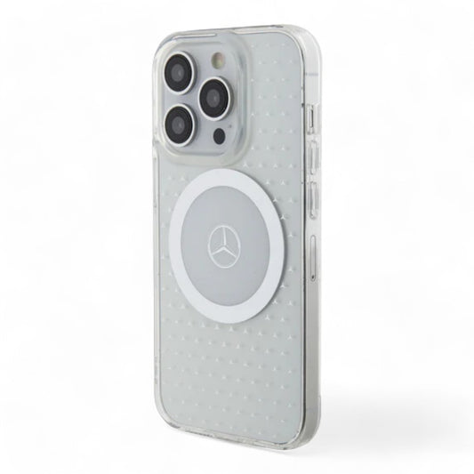 Estuche mercedes-benz magsafe iphone 15 pro pc/tpu clear magsafe case star pattern white color transparente