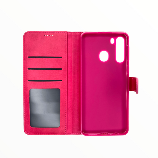 Estuche carteras lc imeeke folio libreta con porta tarjeta samsung a21 color rosado