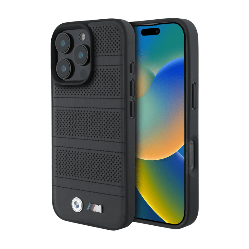 BMW hc m magsafe pu perforated and stitched lines black iphone 16 pro max - TOP MOVIL