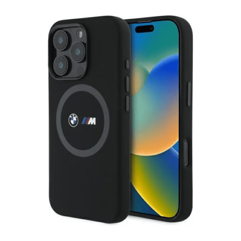 BMW hc m magsafe silicone printed ring black iphone 16 pro - TOP MOVIL