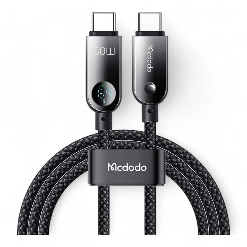 Cable mcdodo usb ca - 478 usb - c 60w pd charging nylon braided 480mbps 1.2m cable digital display battery level color negro - TOP MOVIL