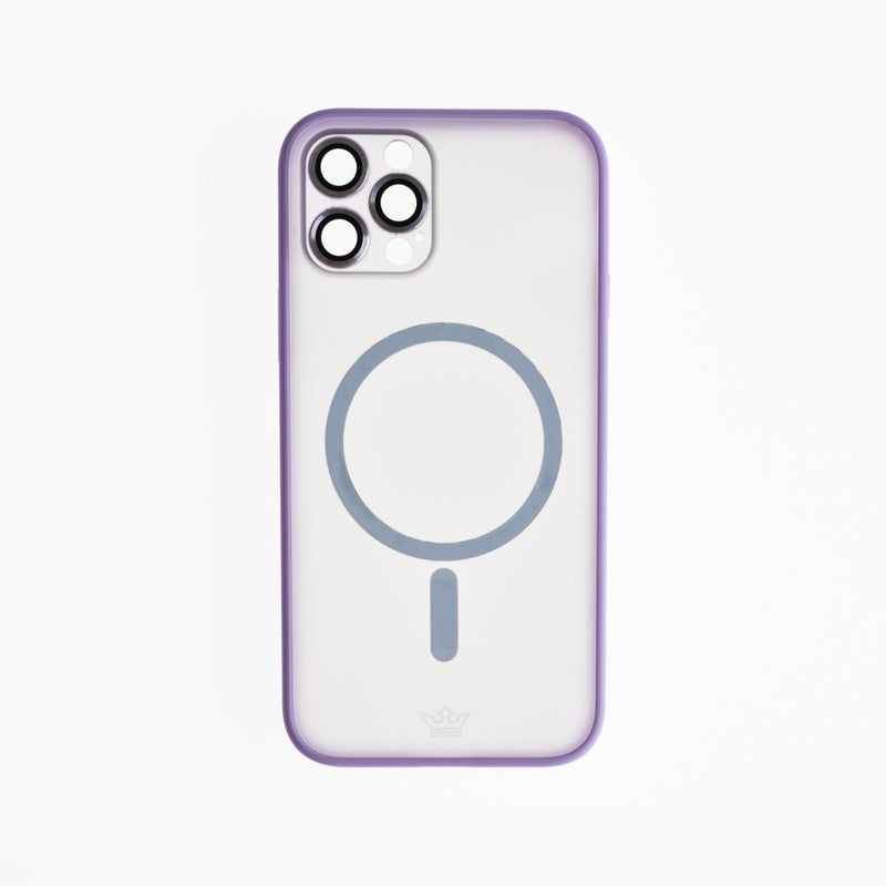 Estuche vidrio templado el rey magsafe con marco de vidrio templado de camara trasera apple iphone 12 pro color morado